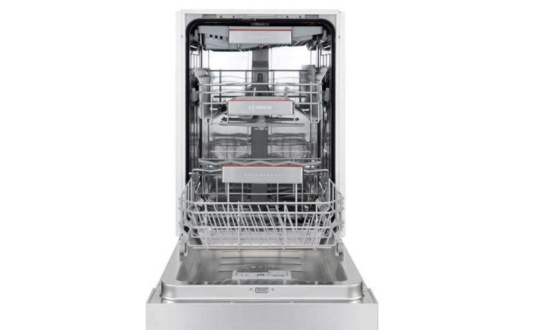 - BOSCH製のフロントオープン型の食器洗い乾燥機。フロントローディング方式を採用し広々とした庫内には高さを変えられるバスケットも収納。
