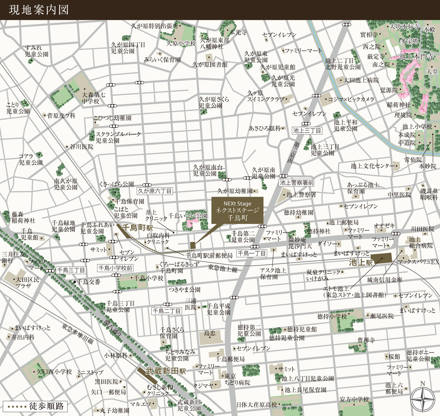 東急池上線「千鳥町」駅徒歩4分。都内でも豊かな自然と文化に包まれる閑静な邸宅地。