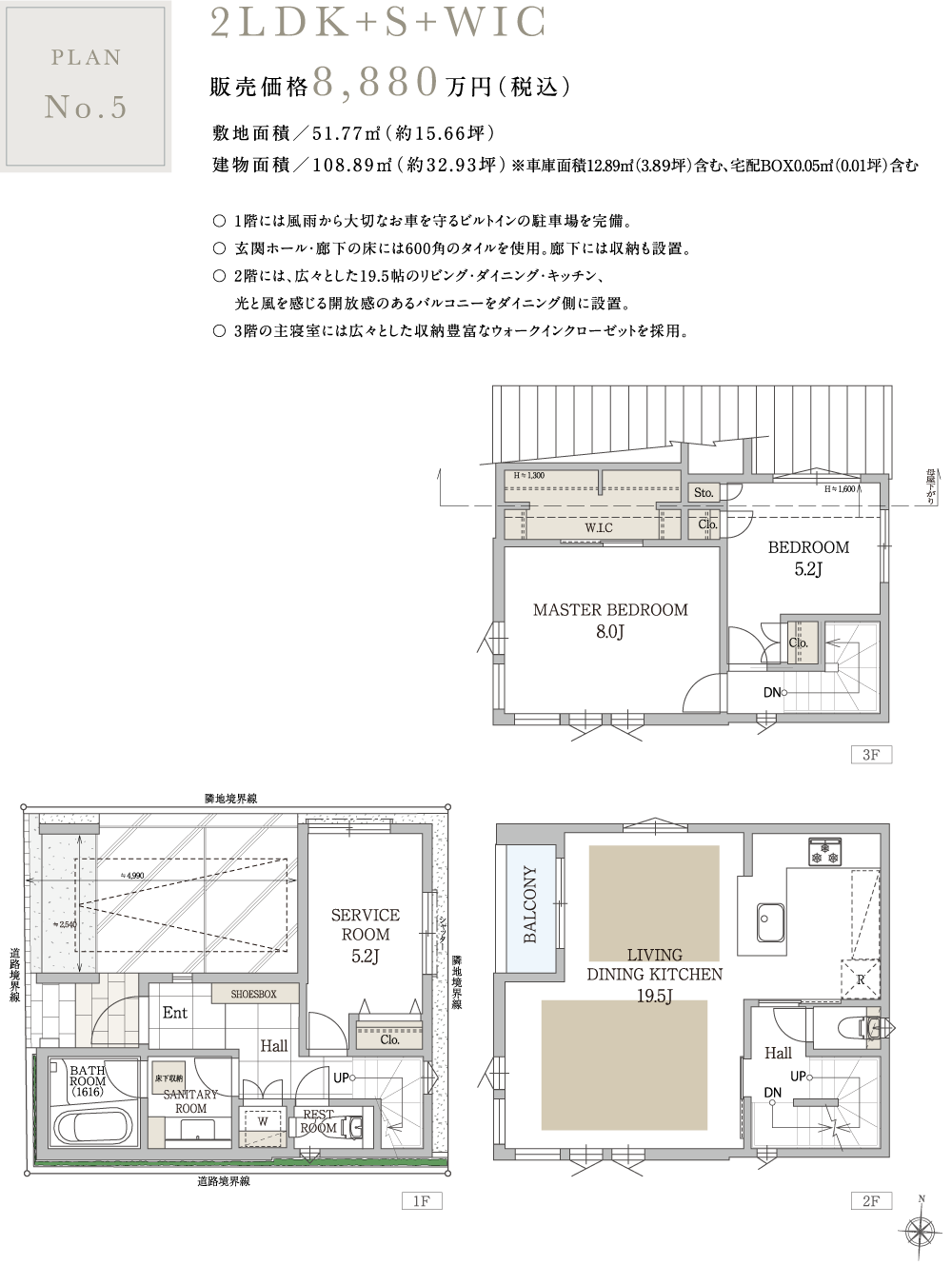- 108.89㎡(約32.93坪)※車庫面積12.89㎡含む