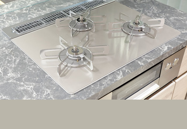 美しいデザインの中に先進の機能と安全性を実現しました。油汚れが簡単に拭き取れるので、キッチンが常に美しく清潔に保てます。ステンレス五徳を採用。