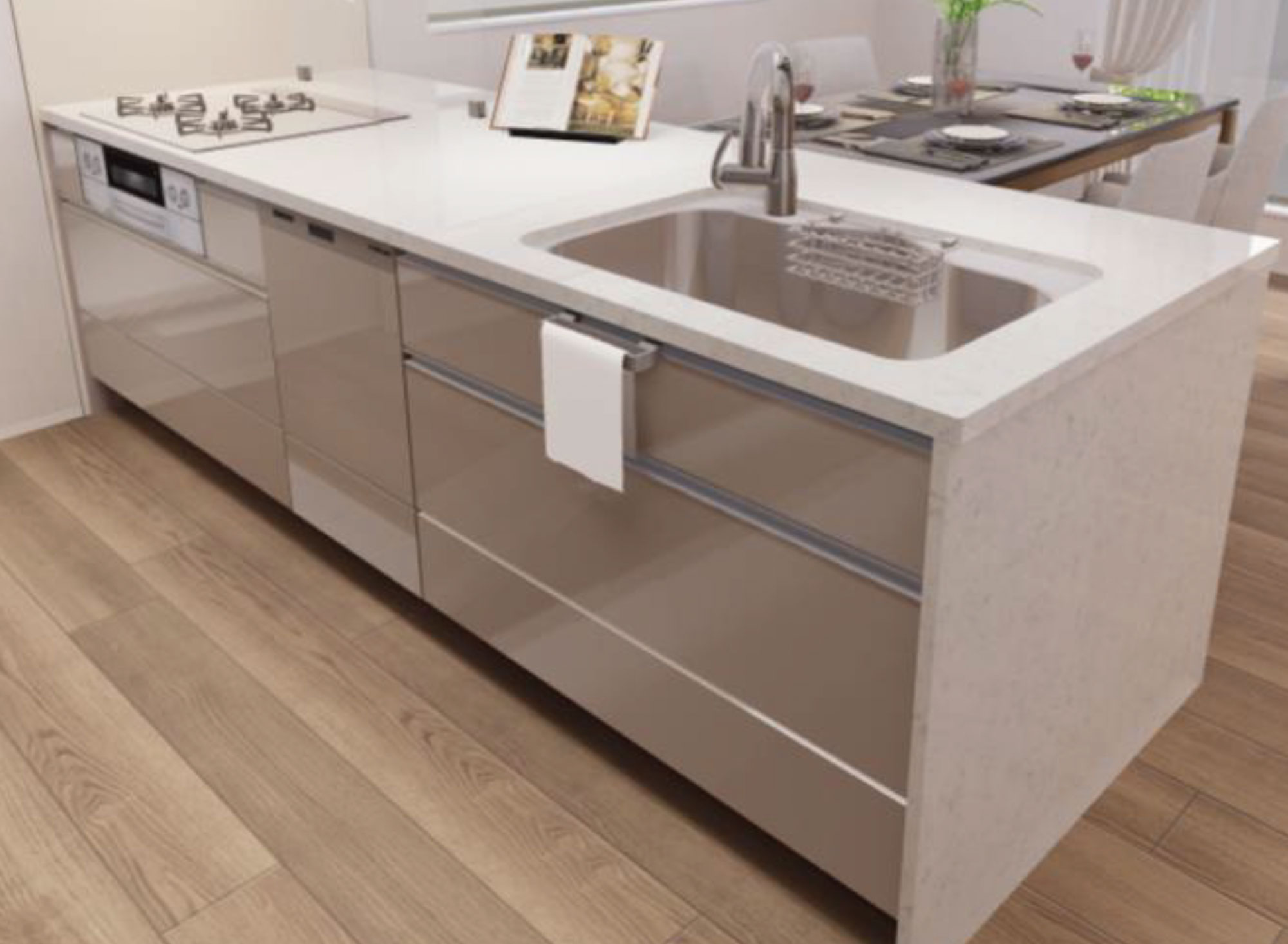 - 清潔感のあるホワイトを基調としたワイドカウンター。