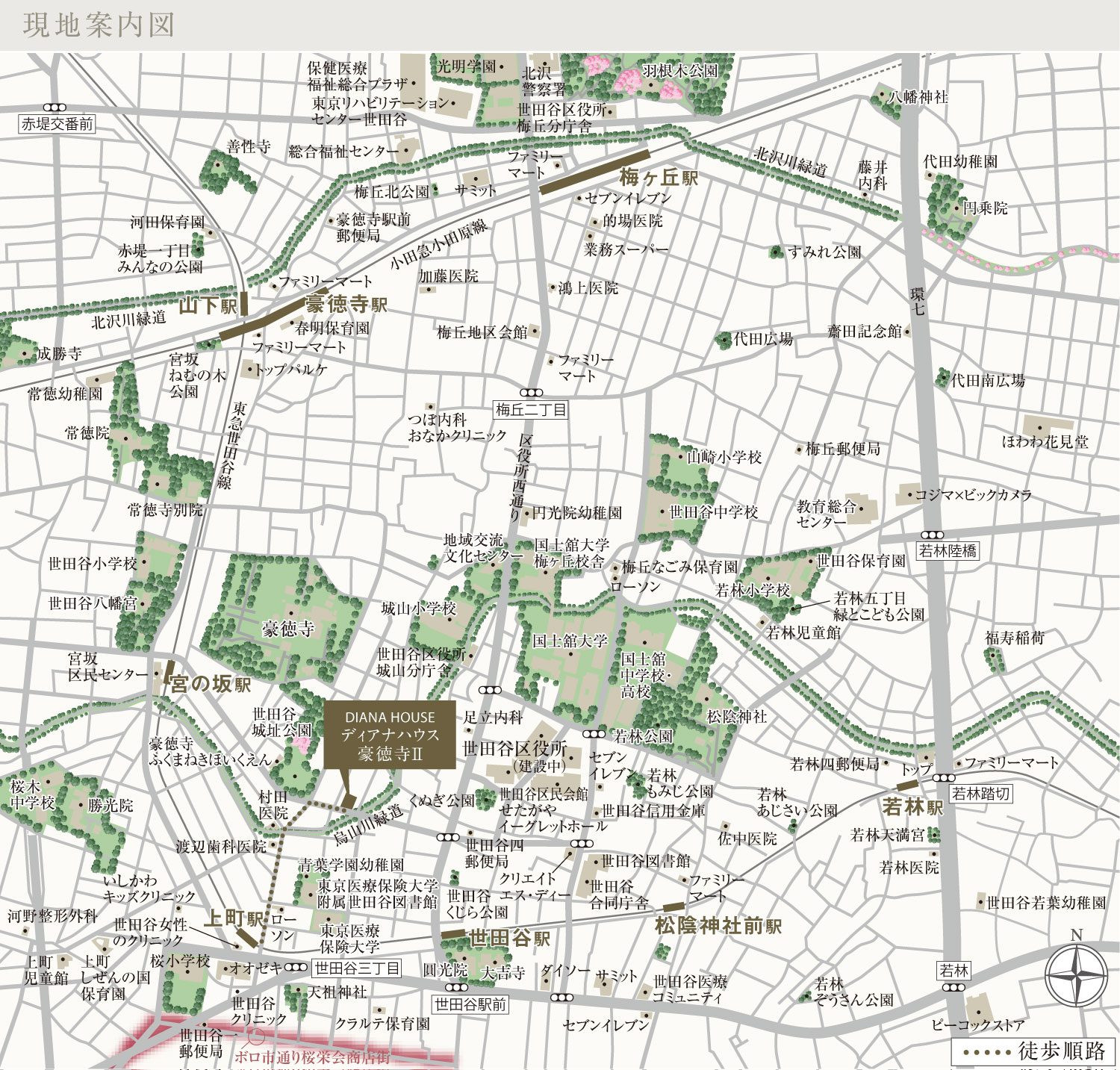 - 東急世田谷線「上町」駅徒歩5分、小田急小田原線「豪徳寺」駅徒歩14分