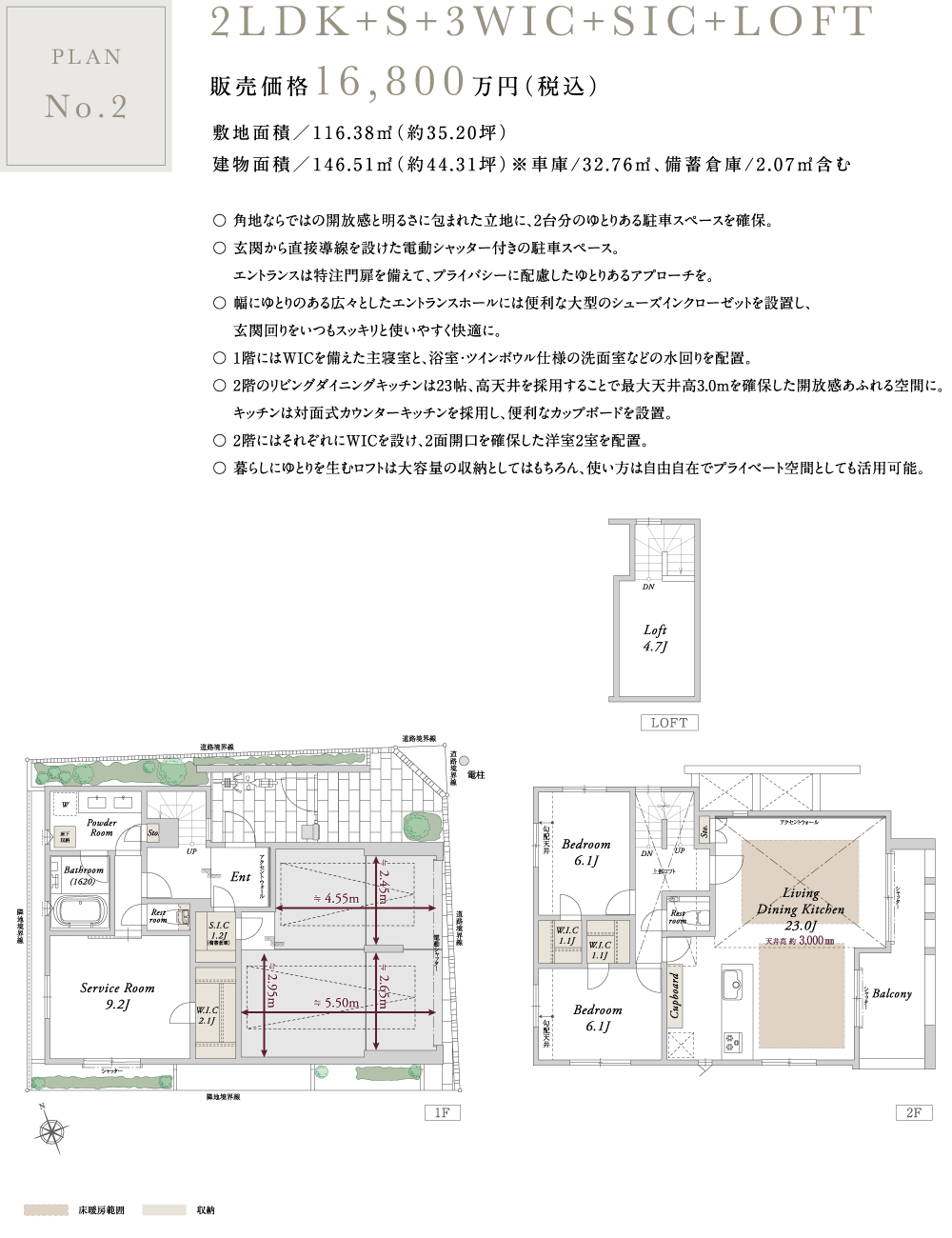 - 2LDK+S+3WIC+SIC+ロフト〜3LDK+WIC+SIC