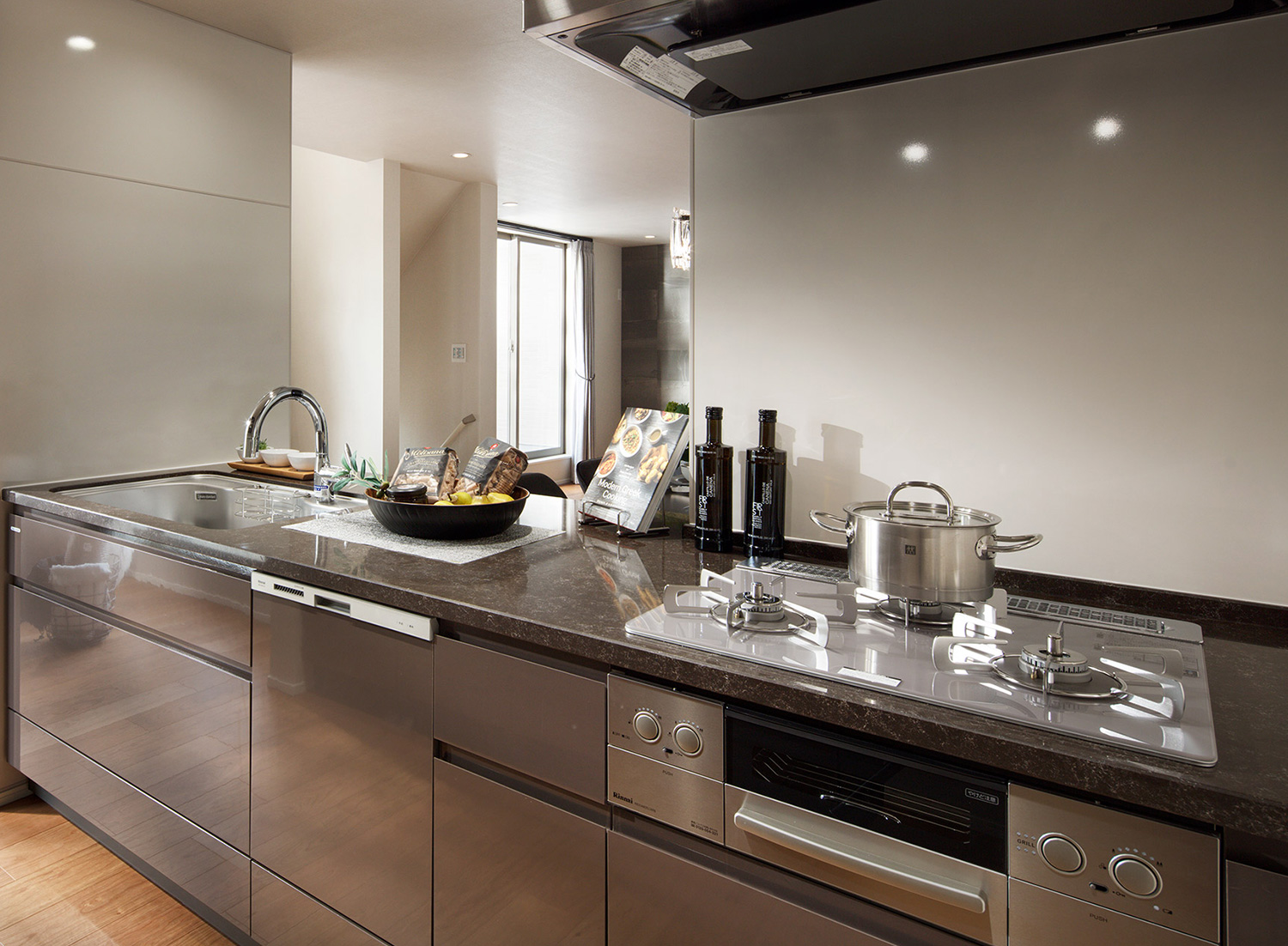 - 調理がはかどる秘密は、3層構造で生まれるスペース。「洗う・調理・片付ける」の作業をスムーズにできて、調理効率アップ。