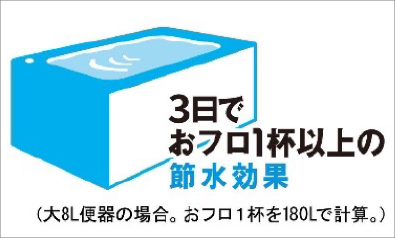- 地球環境に配慮した、強力洗浄の超節水トイレ。大13L便器と比べ約69%、大8L便器と比べ約49%節水できます。