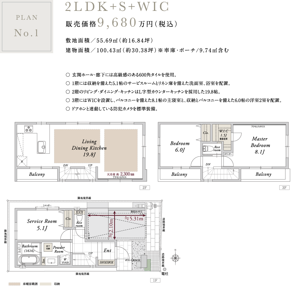 - 55.68㎡(約16.84坪)〜55.69㎡(約16.84坪)