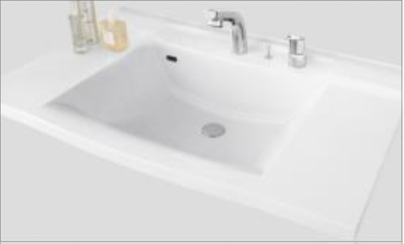- 汚れに強く、頑丈なアクリル人造大理石のフラットカウンターを採用。お手入れもラクラクです。