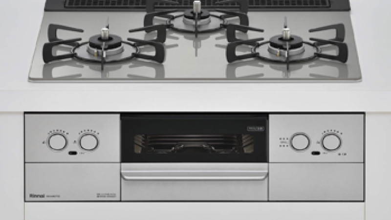 - 水無両面焼グリル。デザイン性に優れたダイヤル式火力ボタンを採用し、温度調節機能を左右バーナーに搭載。