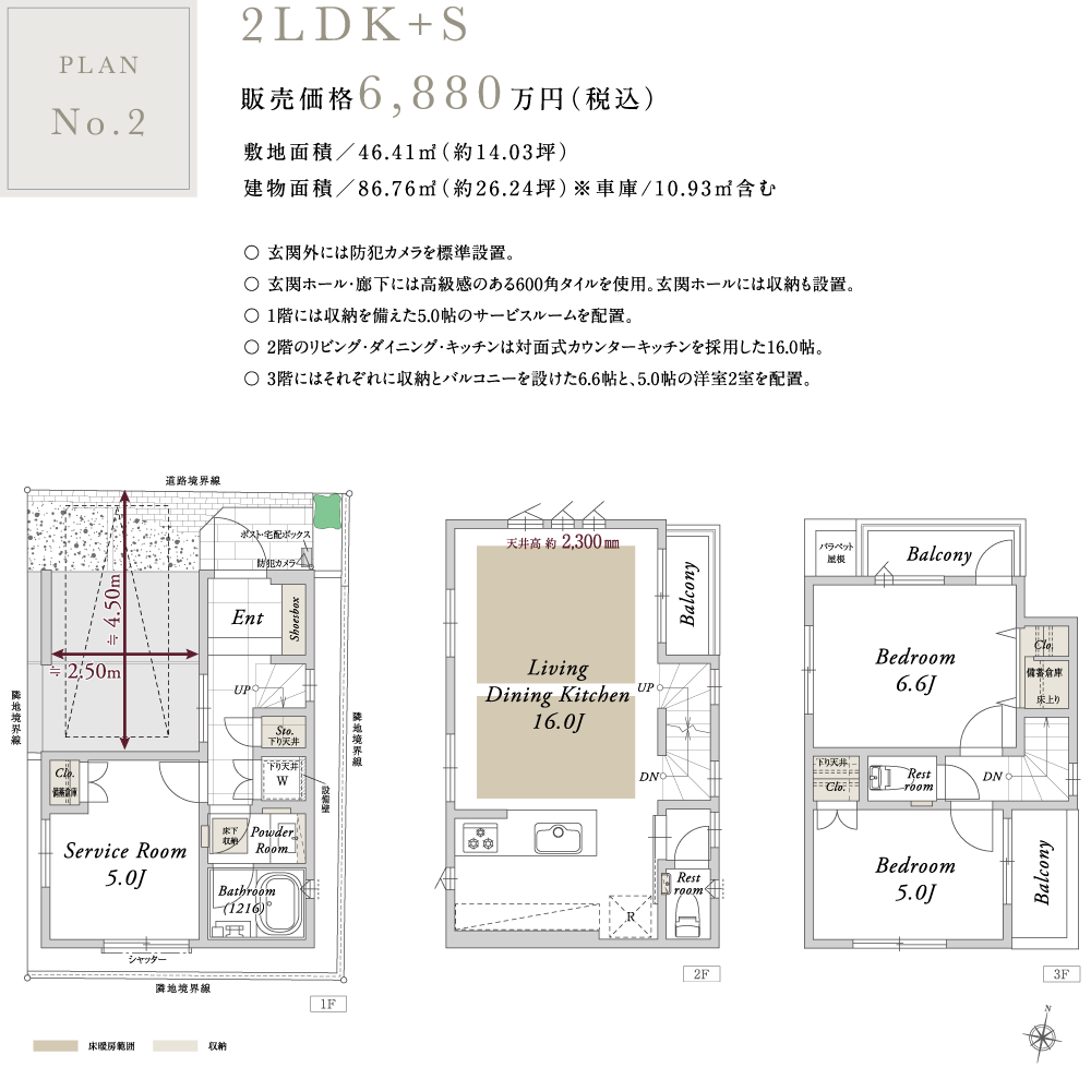 - 86.76㎡(約26.24坪)・86.83㎡(約26.26坪)※車庫面積10.93㎡含む